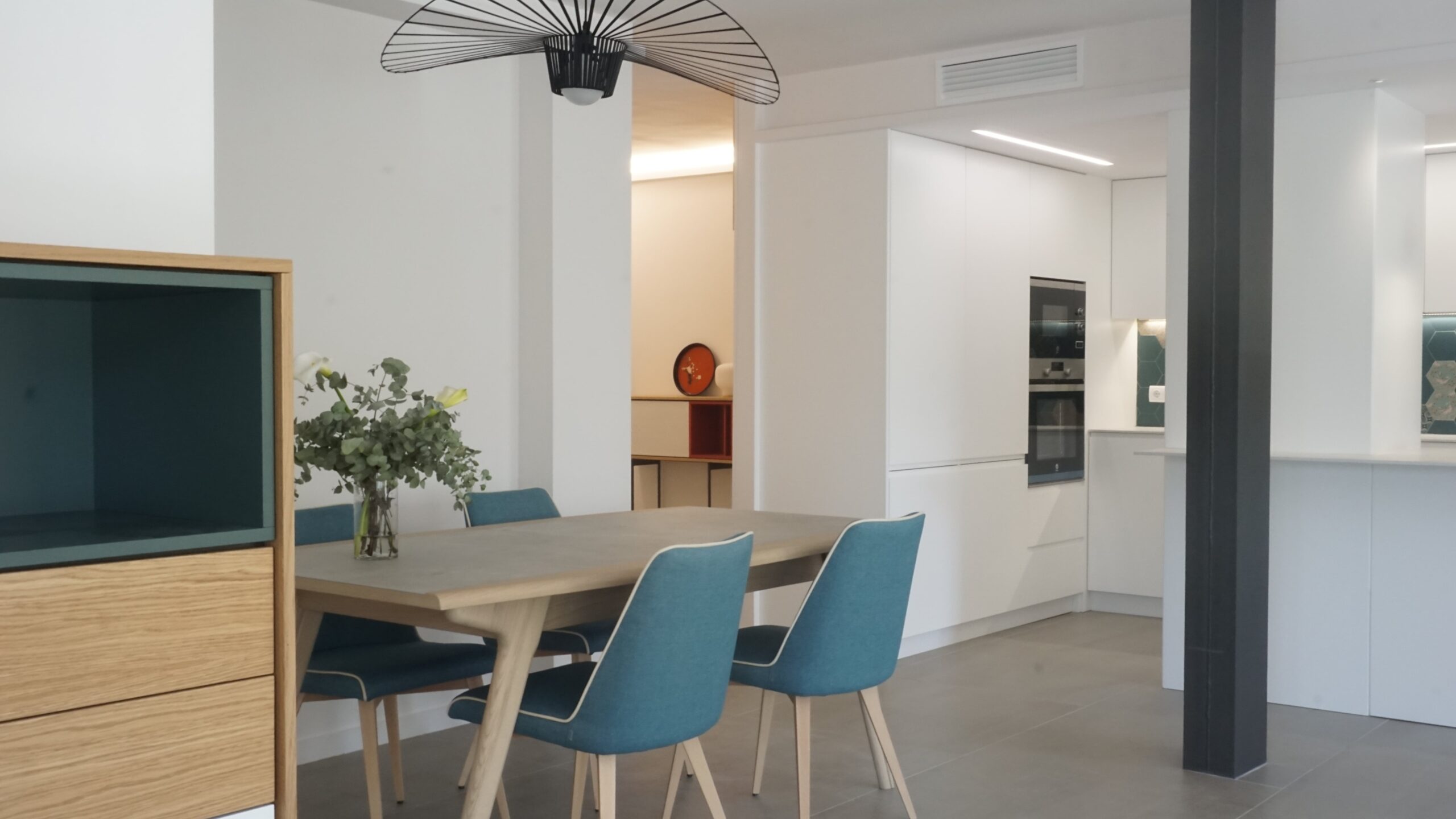 En resumen, este proyecto en el centro de Valencia es un ejemplo de cómo un enfoque bioclimático puede transformar una vivienda en un espacio moderno, funcional y respetuoso con el medio ambiente. La colaboración con los propietarios y el uso de materiales naturales permitieron crear un hogar que es tanto un refugio confortable como un modelo de sostenibilidad. Este proyecto nos recuerda la importancia de diseñar espacios que no solo sean hermosos, sino también saludables y eficientes energéticamente.